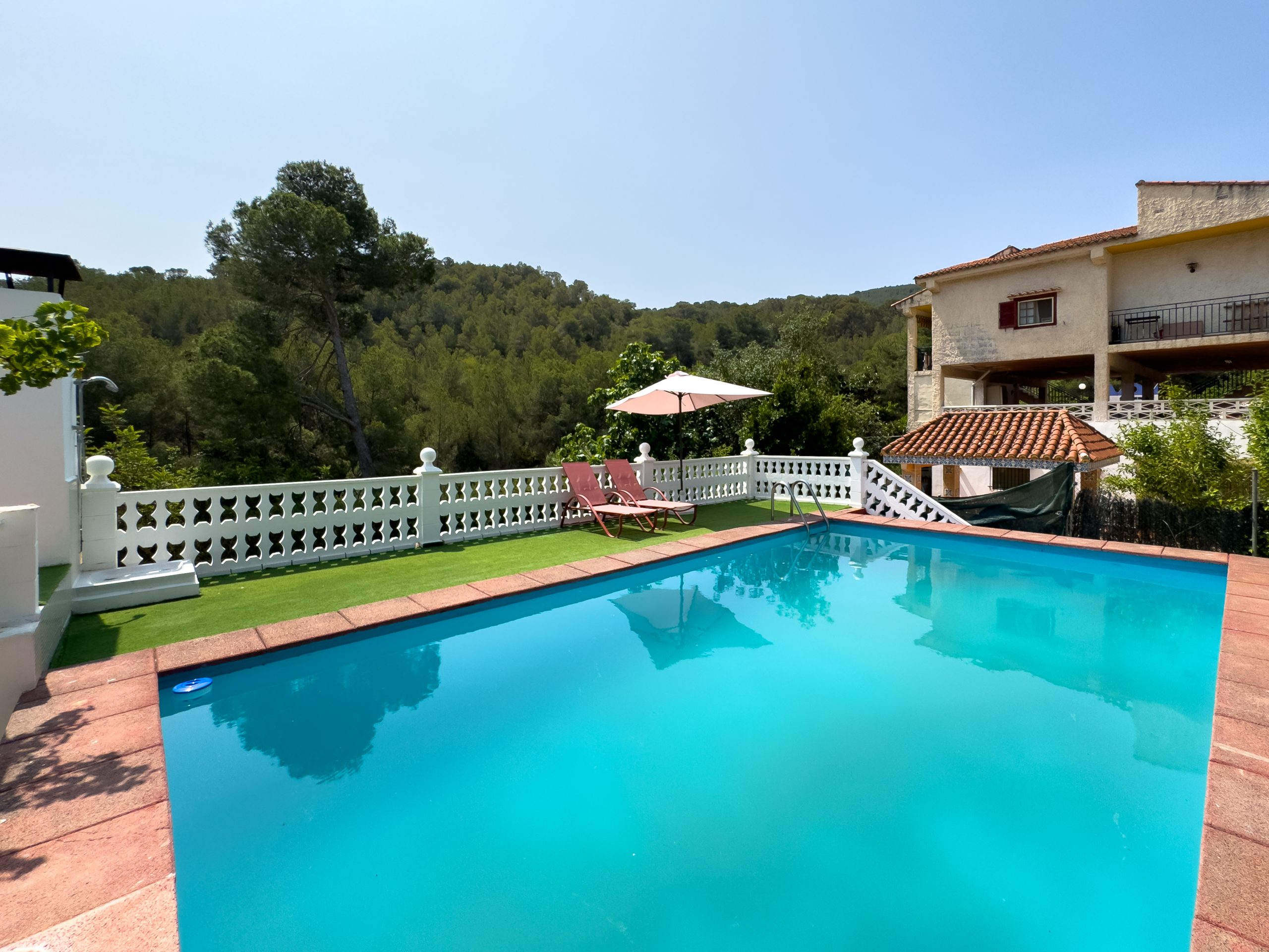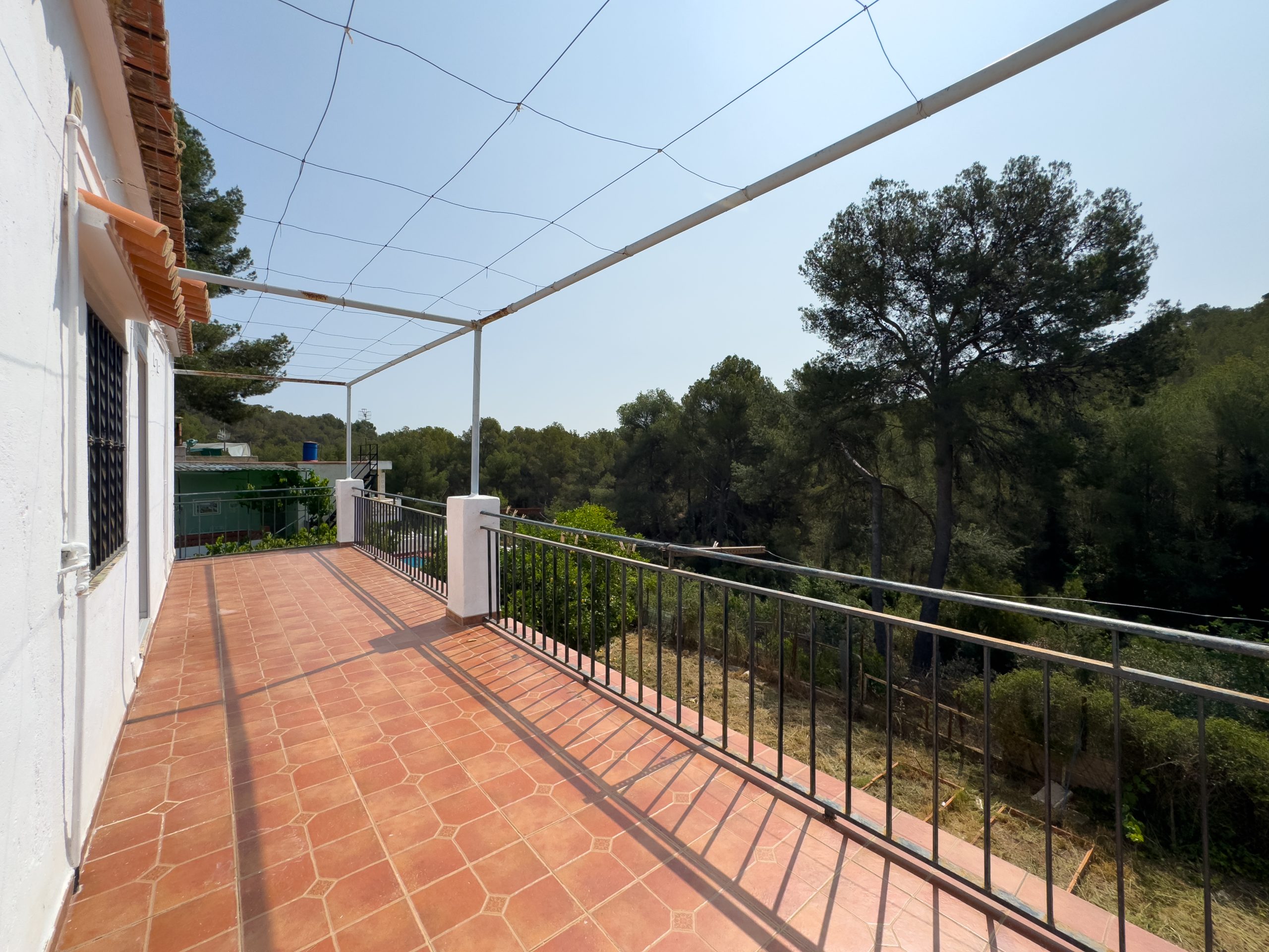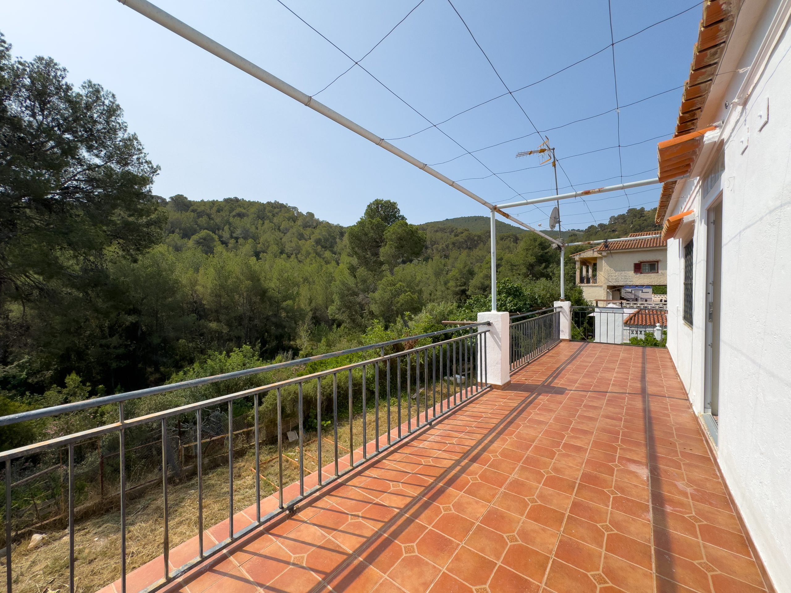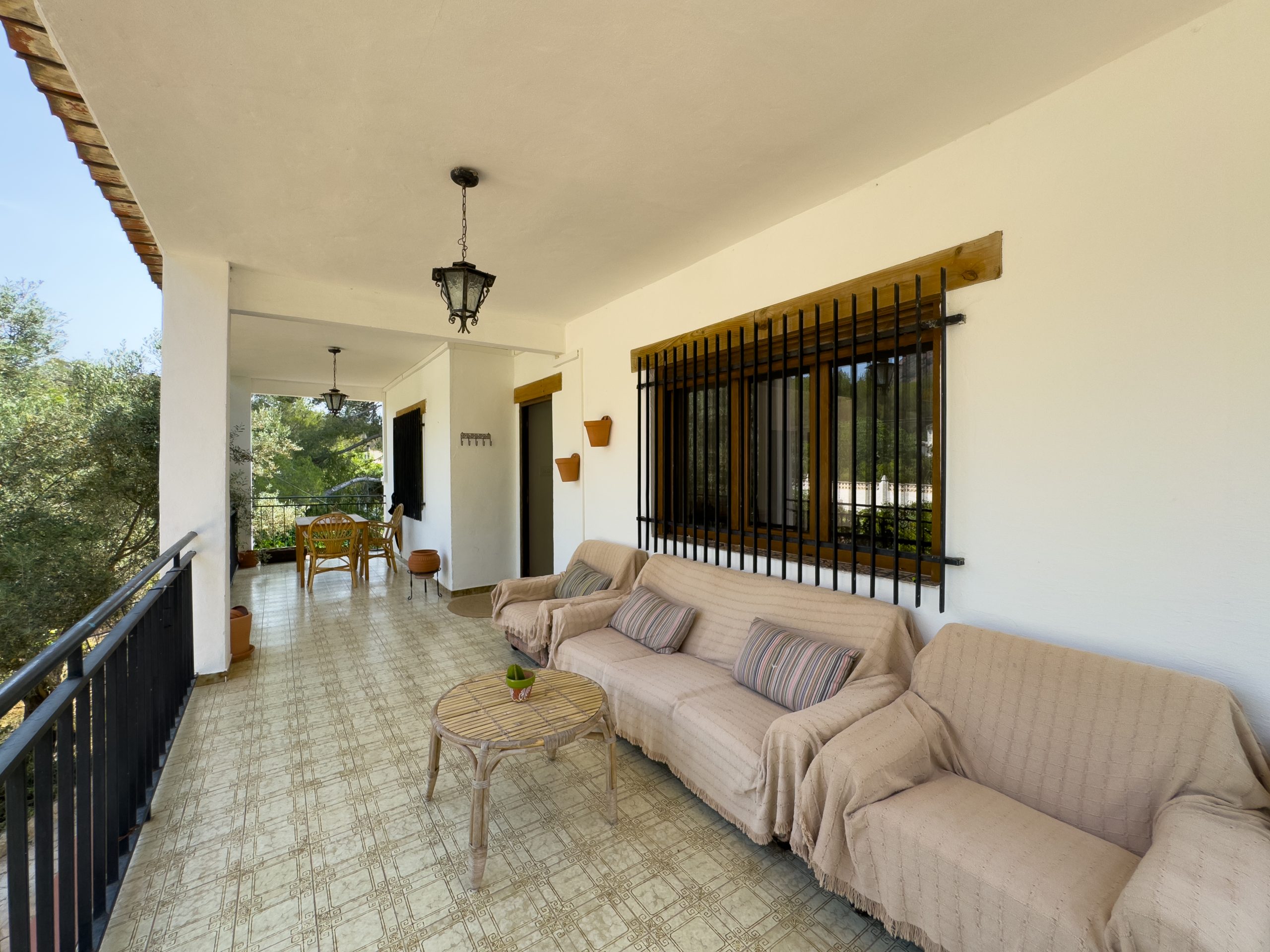 Además, en la parte delantera tenemos un porche cubierto con orientación noroeste y vistas al Garbí, y en su parte trasera una terraza descubierta con orientación suroeste.