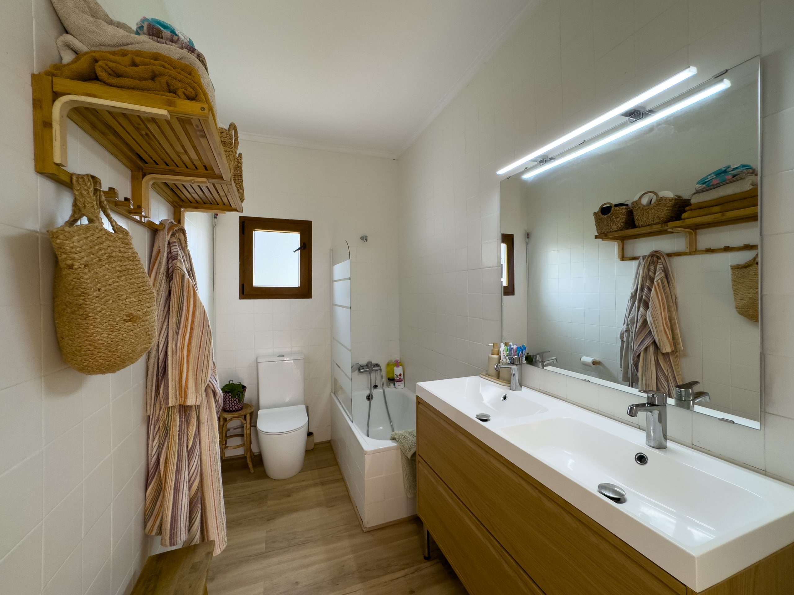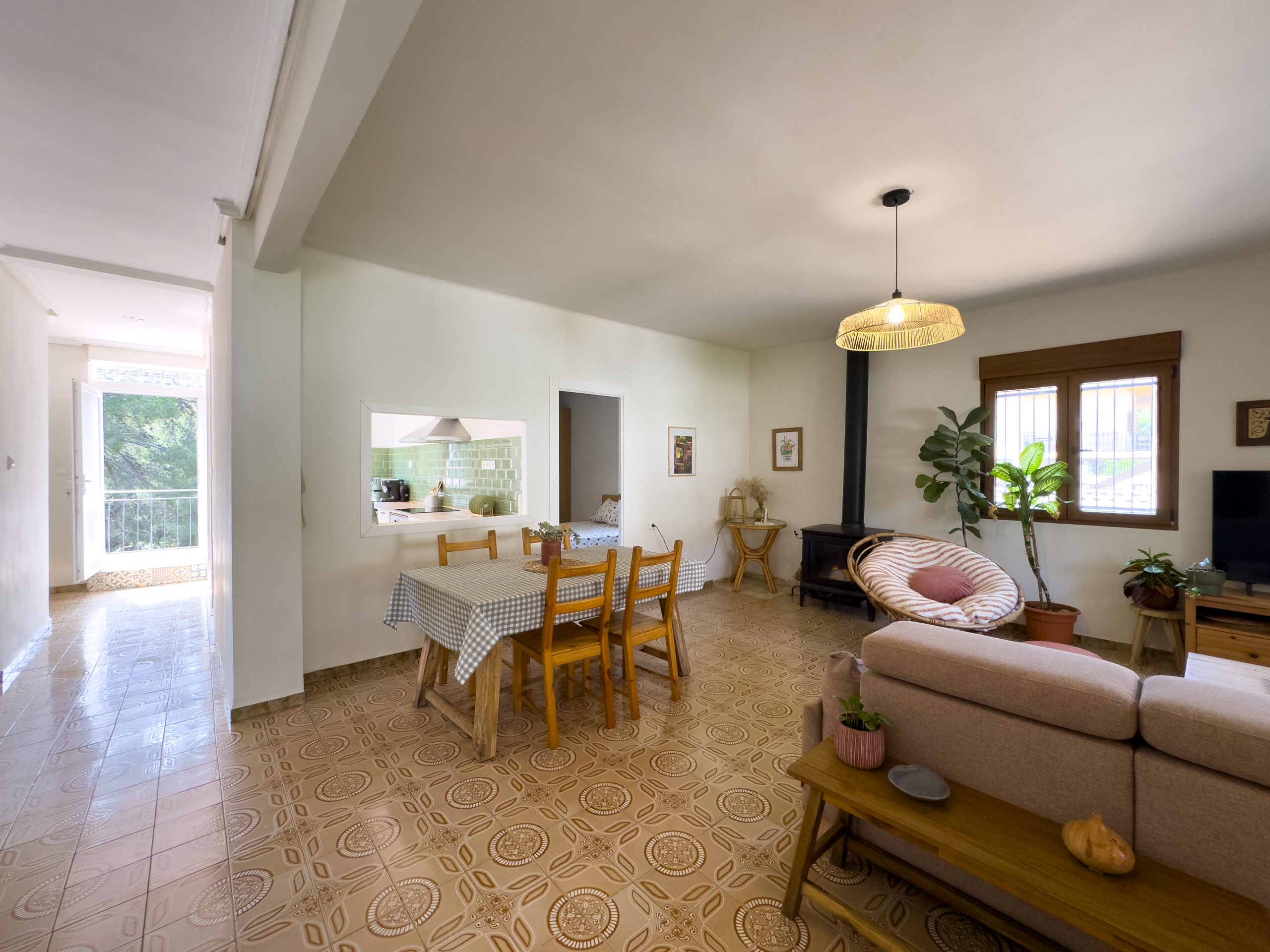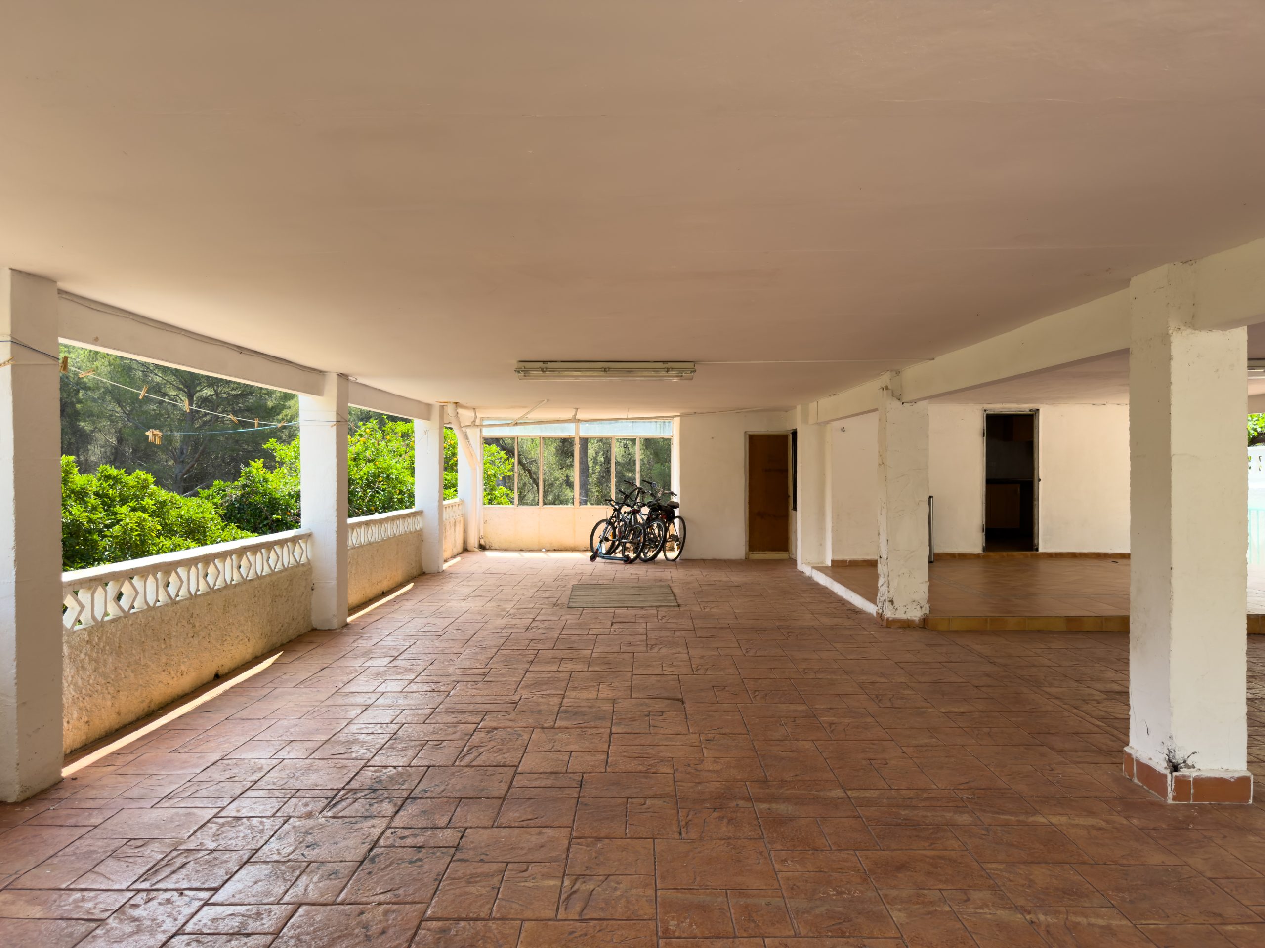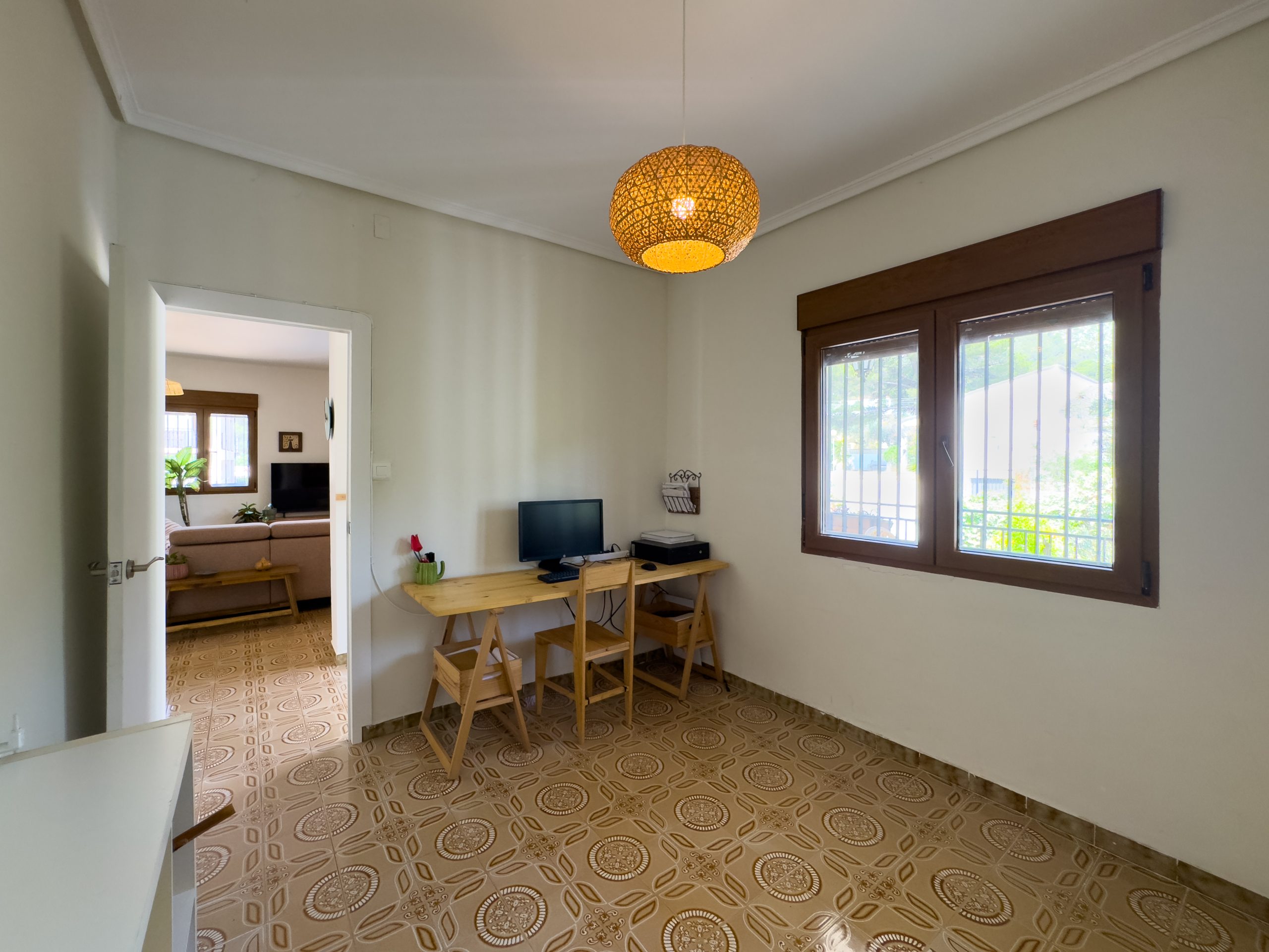 Además, en la parte delantera tenemos un porche cubierto con orientación noroeste y vistas al Garbí, y en su parte trasera una terraza descubierta con orientación suroeste.