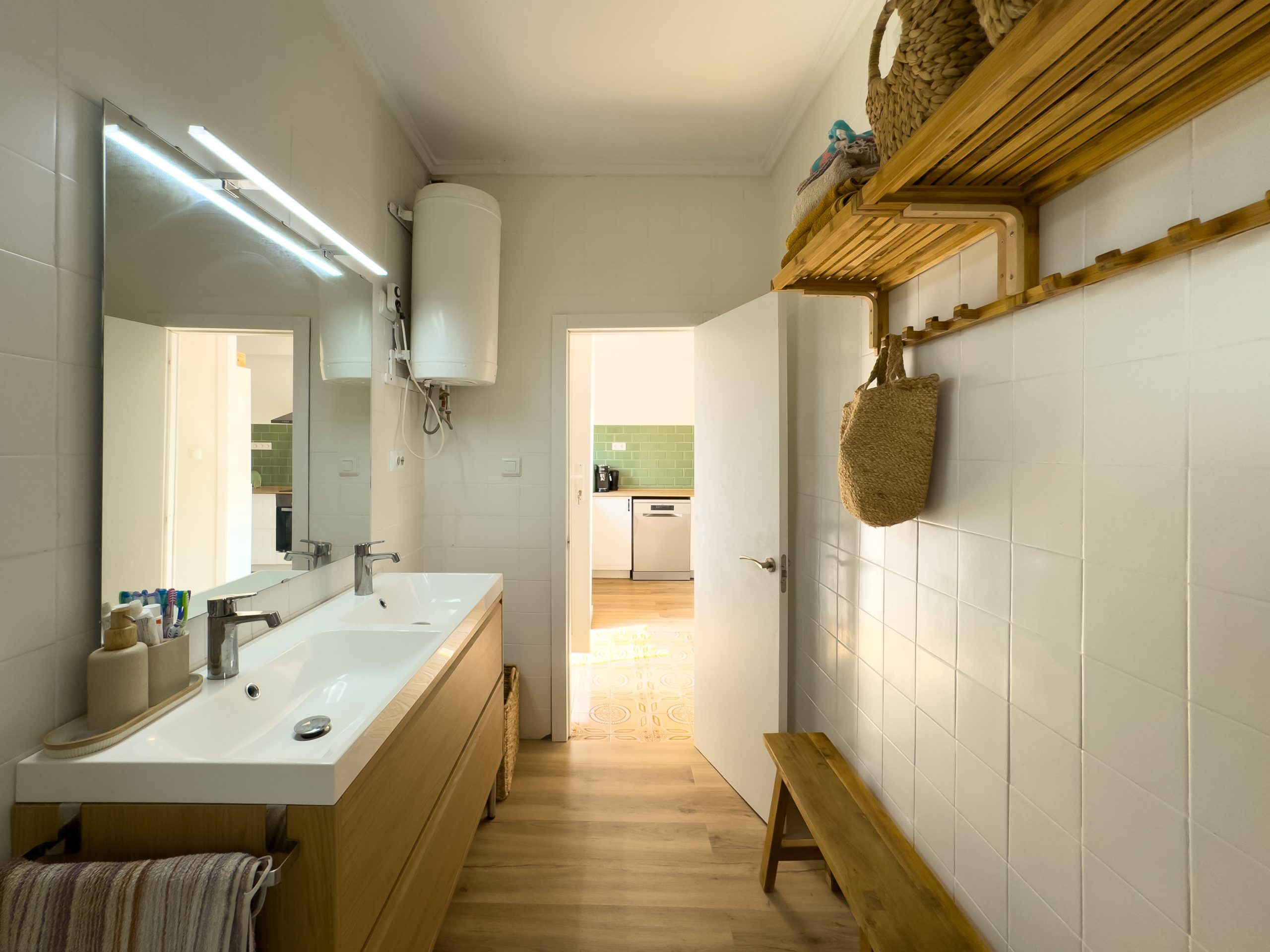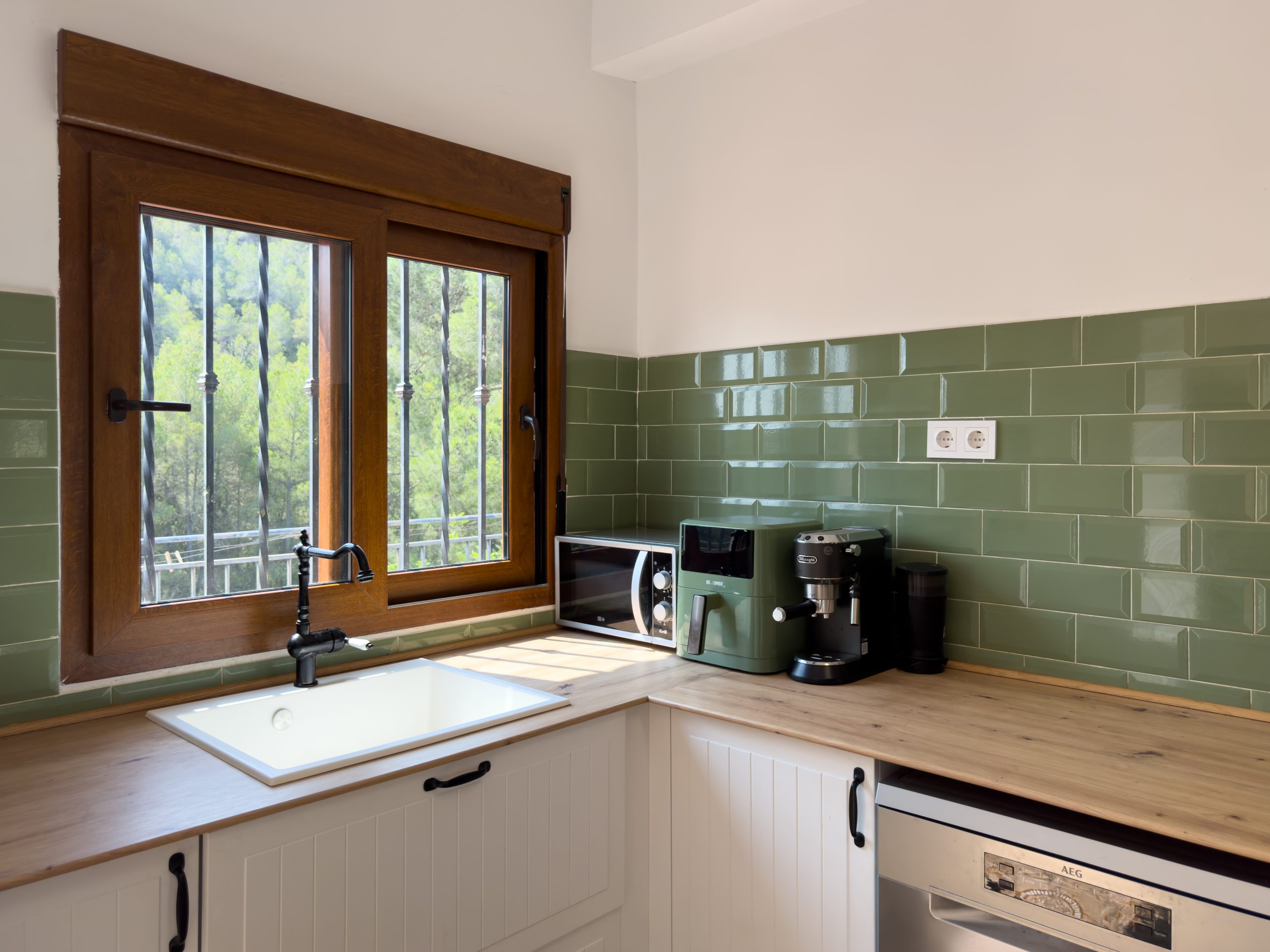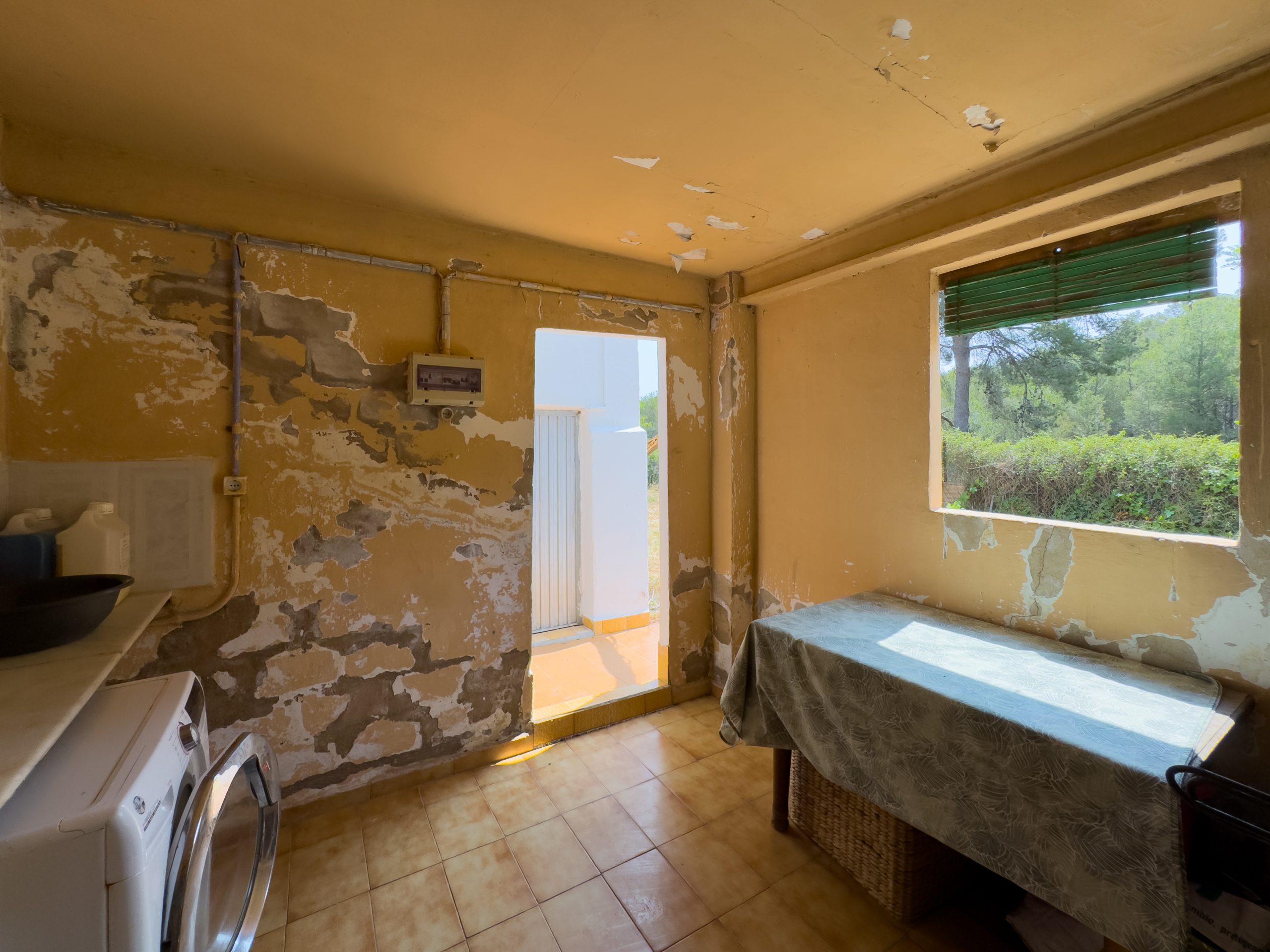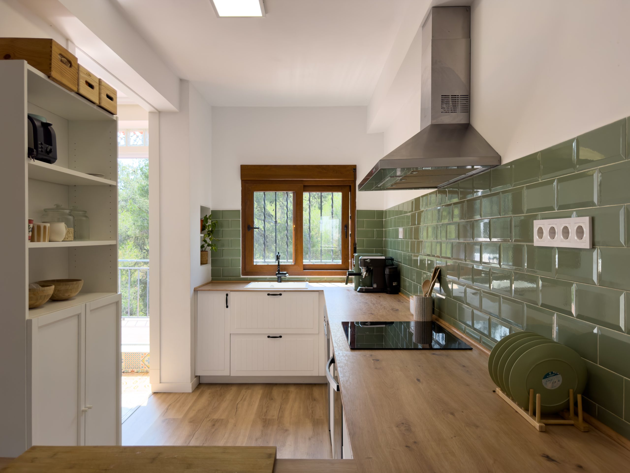 Además, en la parte delantera tenemos un porche cubierto con orientación noroeste y vistas al Garbí, y en su parte trasera una terraza descubierta con orientación suroeste.