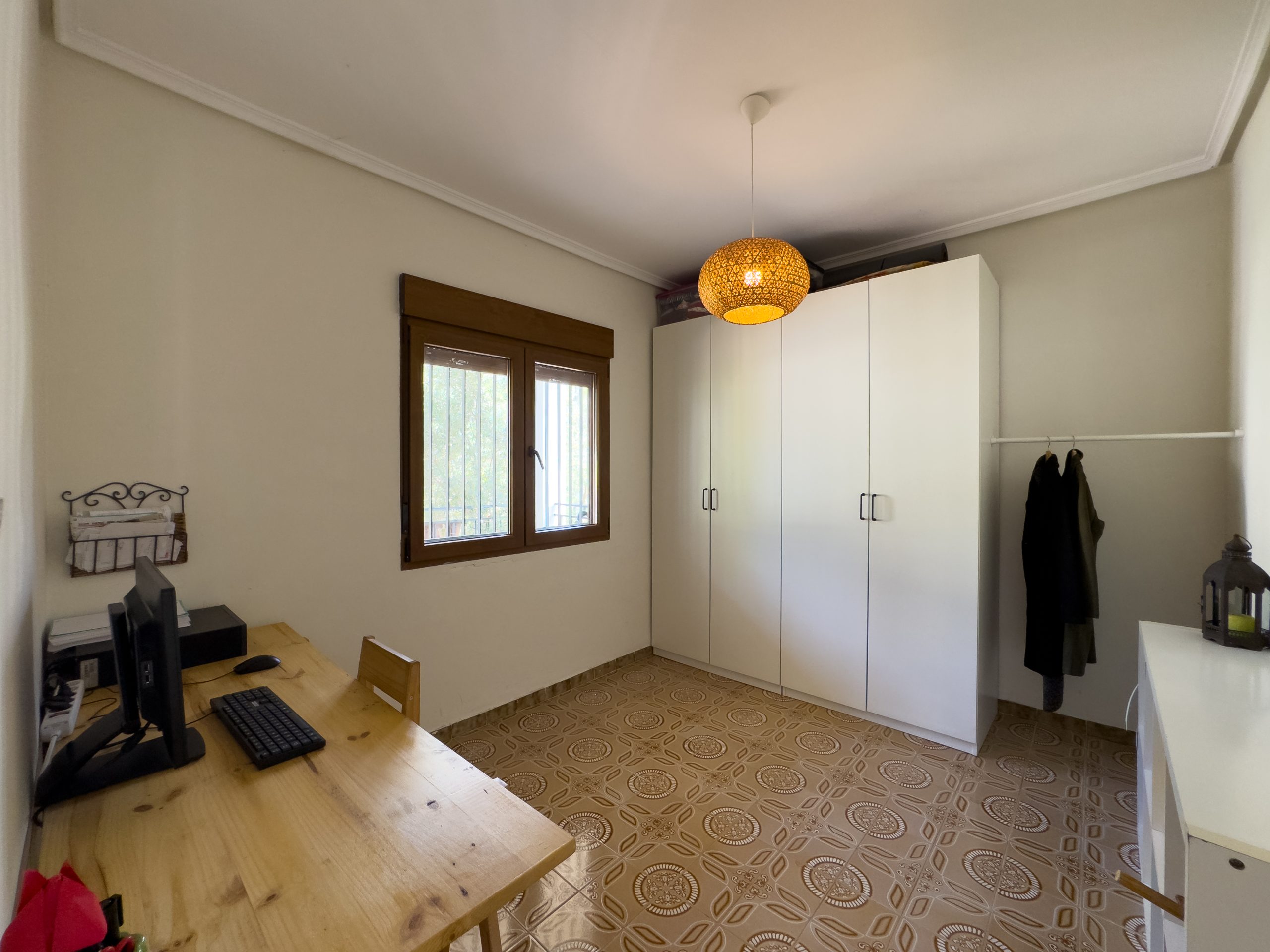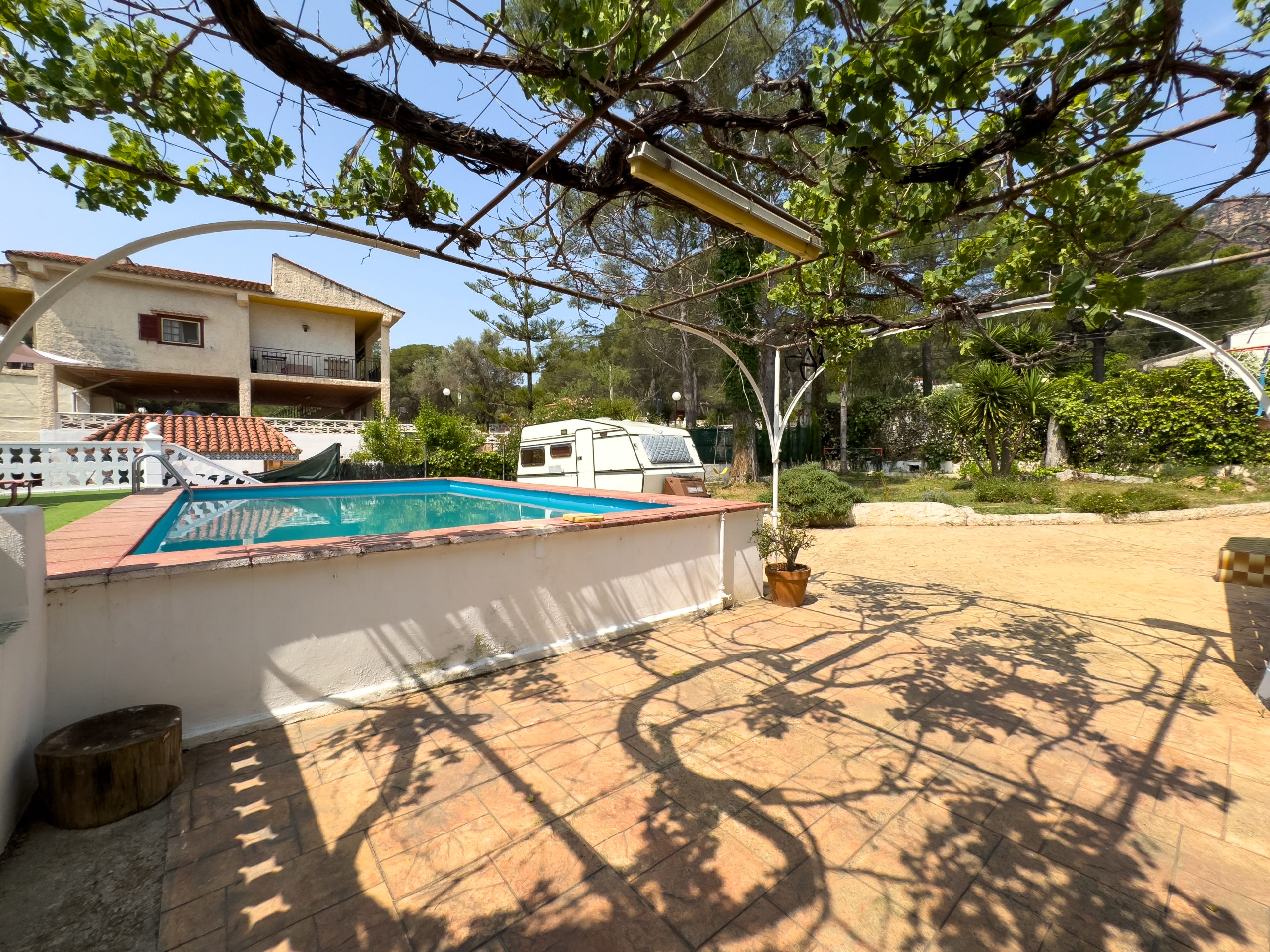 En la planta baja de la propiedad encontramos el acceso a la misma, una zona techada perfecta para aparcar, una cocina independiente y un aseo, además de la magnífica piscina privada en la que disfrutar durante los meses calurosos del año. En la parte inferior a la cual accedemos mediante unas escaleras, tenemos un espacio de almacenaje, un anexo preparado como paellero, y la parte trasera de la parcela que puede utilizarse como huerto.
