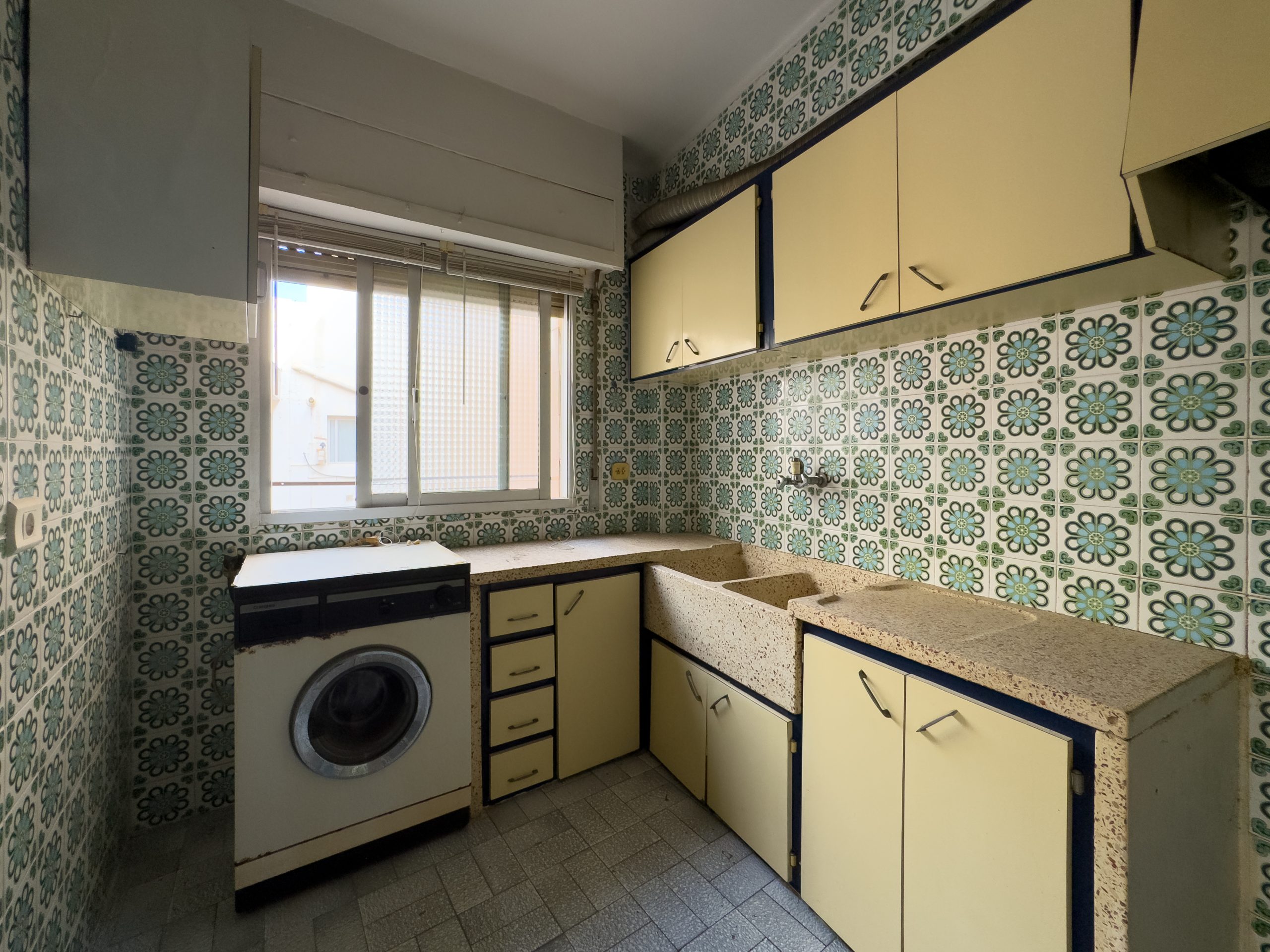 Cuenta con 78 metros cuadrados construidos de los cuales 65 metros son útiles, distribuidos en una cocina independiente, baño completo, dos habitaciones dobles, y un salón/comedor con salida al balcón. La finca construida en el año 1975 dispone de ascensor.